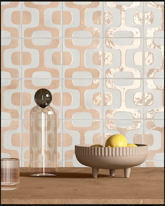 Made in Italy, this stunning collection features a suite of pattern feature tiles in the 200mm x 200mm size available in 4 textured colours and a neutral Gloss tile to complete the authentic look. Inspired by the mesmerizing interplay of concave and convex shapes with an unevenly poured glaze that creates edges that evoke the handmade.