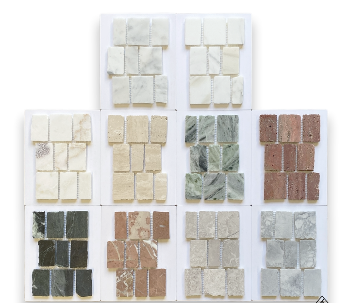 Our OLIVETTI Stone Mosaic Collection is inspired by ancient mosaic floors stretching back to Roman mosaics as seen at the Coliseum. The beautiful, detailed natural Artisan finish captures this timeless quality of hand cut stone with clear horizontal line reflecting stone strata. Olivetti Sheets are interlocking.
