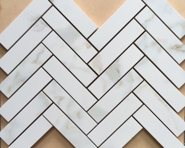 Euromarmo Herringbone Porcelain Mosaic Calacatta Gold Honed