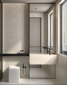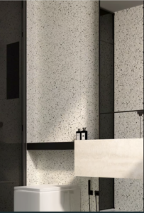 Rialto Silver tiles feature a soft, neutral terrazzo design with a matt finish. Available in 30×30 cm and 60×60 cm formats, these porcelain tiles add subtle texture and elegant sophistication to floors, walls, and feature areas.
